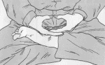 Placeyour right hand palm-up on your left foot, and your left hand palm-up on your right palm. The tips of your thumbs should belightly touching each other. |